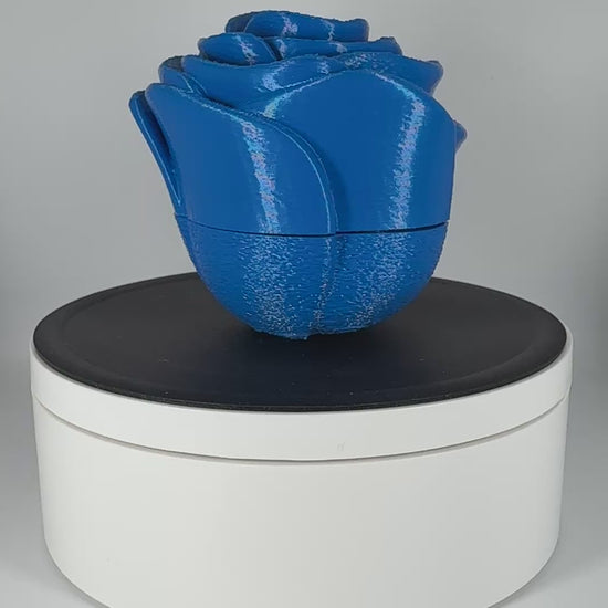 Introducing our beautifully crafted 3D Printed Rose Keepsake Trinket Box, designed to bring a touch of elegance and sentimentality to any space. Carefully printed using high-quality silk blue PLA filament, this stunning decorative piece captures the delicate form of a blooming rose while cleverly concealing a small storage compartment inside.